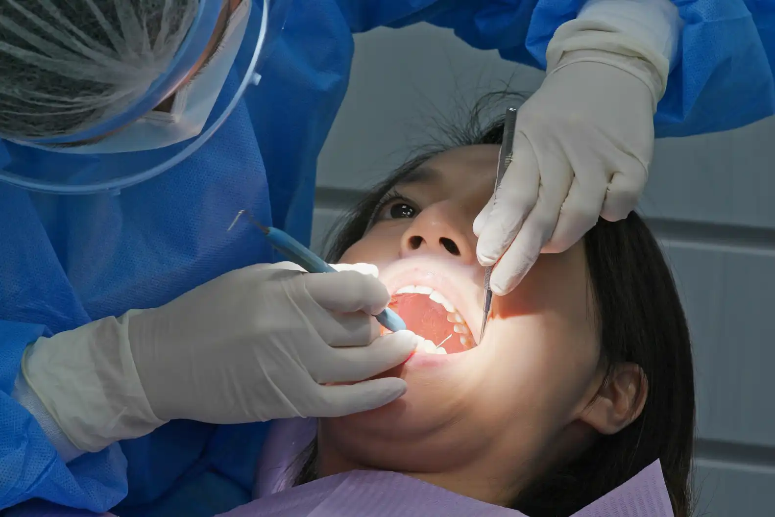 - Scaling - Removes plaque, tartar, and bacterial toxins from tooth surfaces and below the gumline.